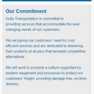 Gully Transportation is committed to providing services that accommodate the ever changing needs of our customers.