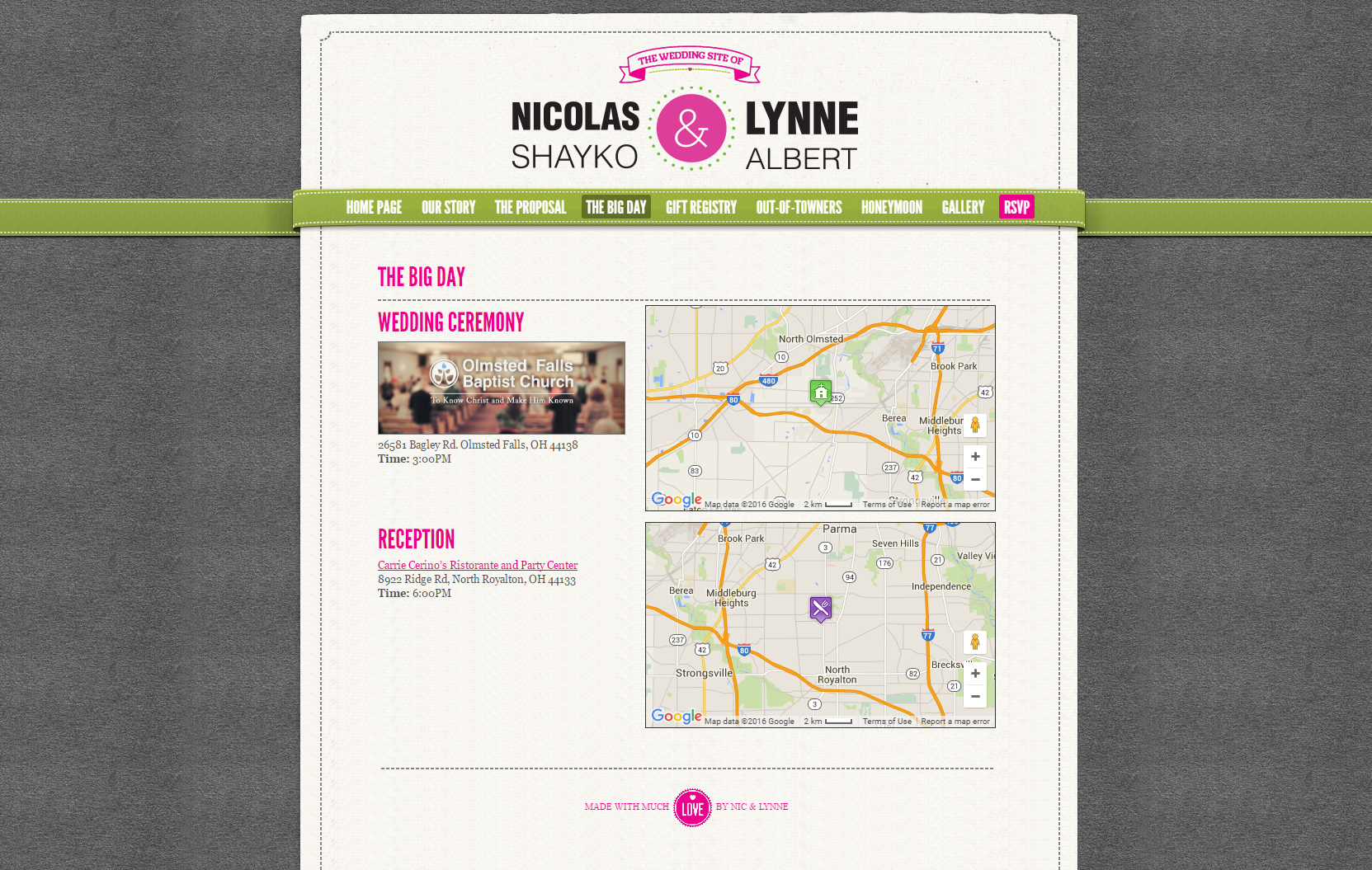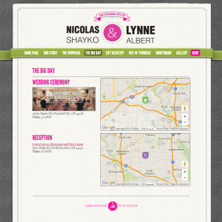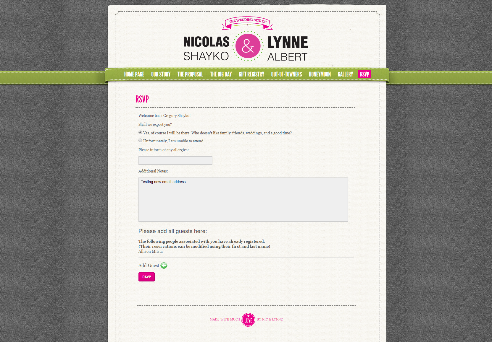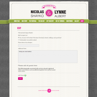 WordPress theme with online RSVP options including guests and custom food/allergy requests.